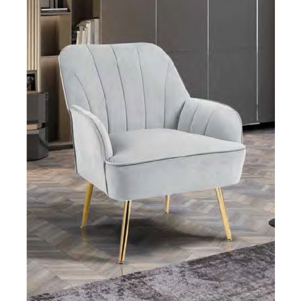 Cadeirão 771 Bertina em tecido velvet, pé dourado, disponível na cor cinza, beje, verde.