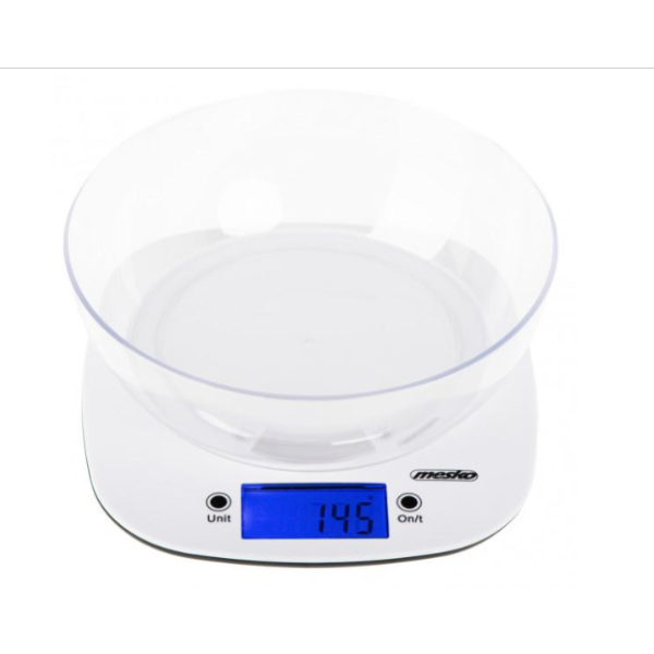 Balança de cozinha eletrônica com carga máxima de 5 kg e precisão de 1 g.